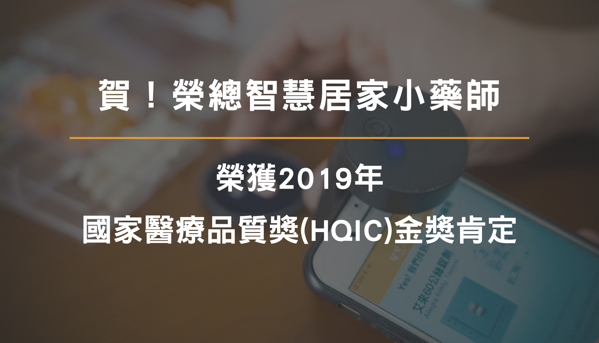 財團法人醫院評鑑暨醫療品質策進會(簡稱醫策會)國家醫療品質獎網站在2019年11月13日已正式公告,我們「愛家小藥師」代表台北榮總參加競賽,並在全國103家醫院中獲得2019年第二十屆國家醫療品質獎智慧醫療金獎!